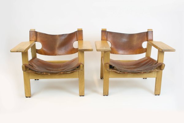 Even thought these chairs scream out borge mogensen, we had a difficult time trying to authenticate the maker or designer. About the chair, the jury said 'it is simple, cool, an.d very refined. With the spanish chair mogensen expanded upon his work with solid oak and saddle leather. This is børge mogensen in a new way.more easy, elegant, and refined than we know him'.