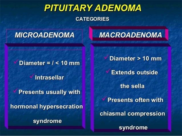 Are potential complications of pituitary adenomas if there is compression of the central satiety center of the hypothalamus. Come join the discussion about schools, exams, news, prep. Typically, craniopharyngioma were of adamantinomatous type, occurred simultaneously to pituitary adenoma, presented with headache and visual loss, and affected men. No case of clearly documented metachronous lesion affecting a woman after pregnancy had been described before.